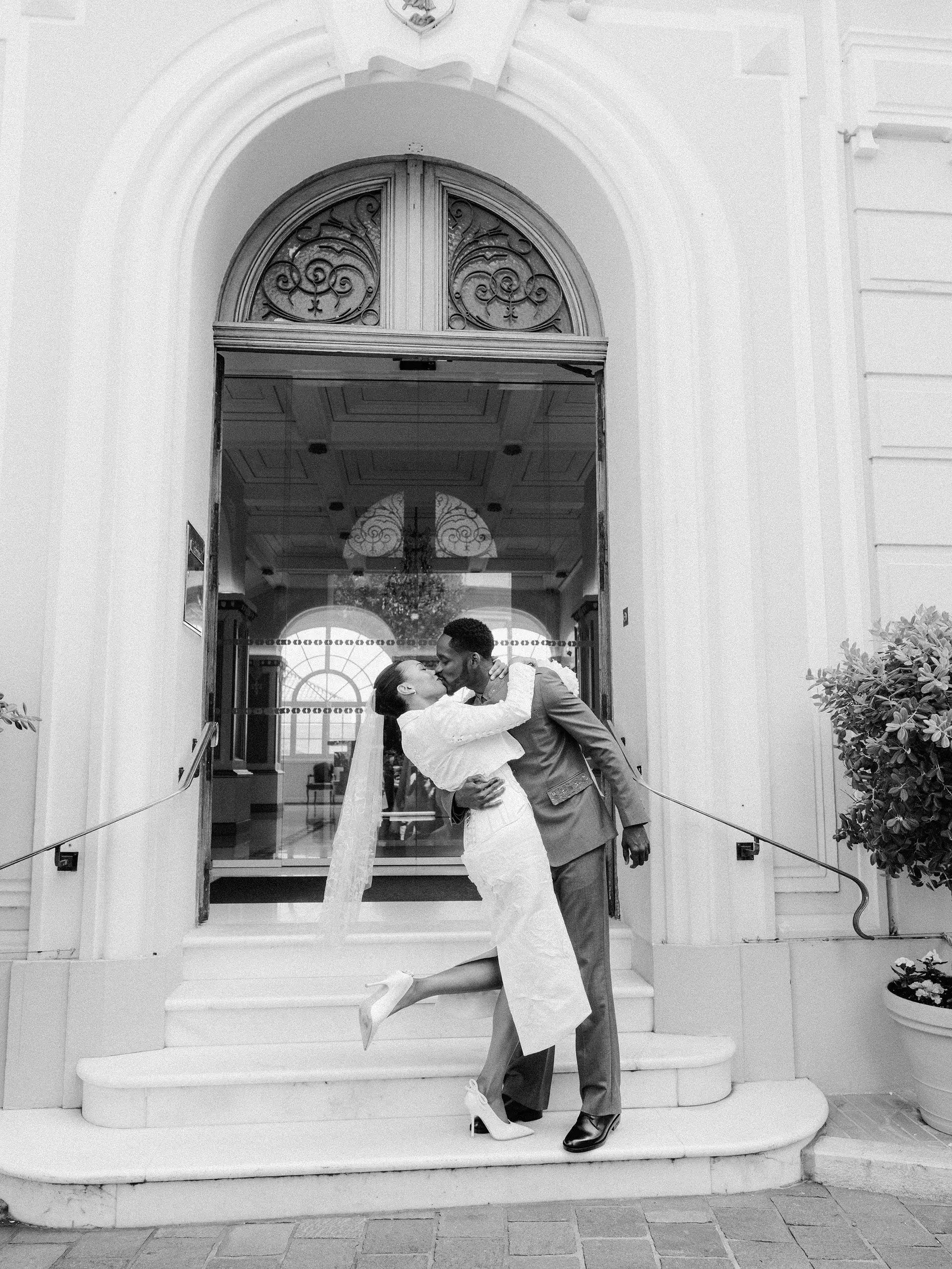 The wedding journey began with intimacy. On May 9 in Monaco, Temi and Eazi signed their civil papers, a date chosen to honor the birthday of Eazi’s late mother. The setting was pared-back and stately, with the couple framed by the clean geometry of the Mairie de Monaco.