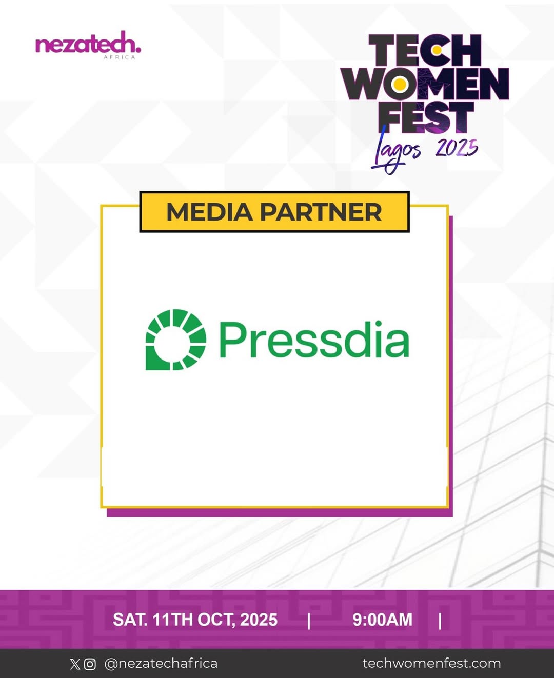 Lagos — Today, Pressdia and the Talented Women Network (TWN) have joined Tech Women Fest 2025 as media partners, working together to amplify the stories, voices, and impact of women driving change in Africa’s tech ecosystem. The event holds today, Saturday, October 11, at Solution Arena, Onipanu, Lagos, with the theme “Tech for Impact: Innovating Solutions for Africa’s Challenges.”