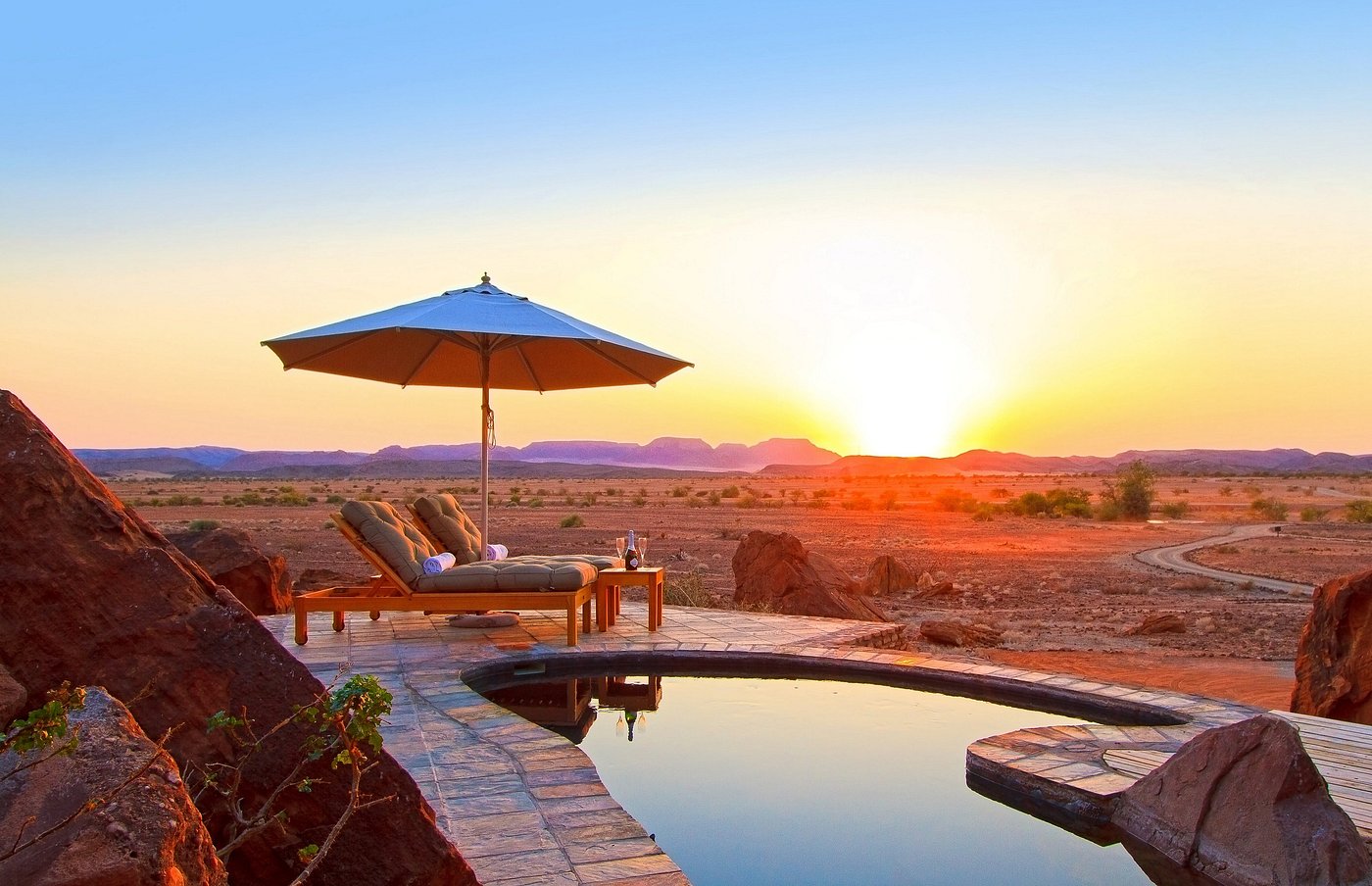 Set against the dramatic backdrop of northwestern Namibia’s desert, Twyfelfontein Country Lodge offers an exclusive blend of comfort, elegance, and adventure. The lodge’s spacious, tastefully appointed chalets feature private terraces with sweeping views of the rugged terrain, providing a serene and intimate retreat for discerning travelers.
